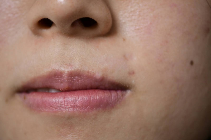 上口唇に多数の小さな色素斑が認められます。これはホクロではなくシミです。