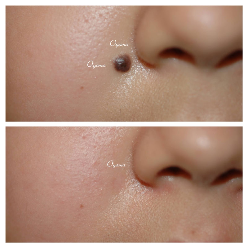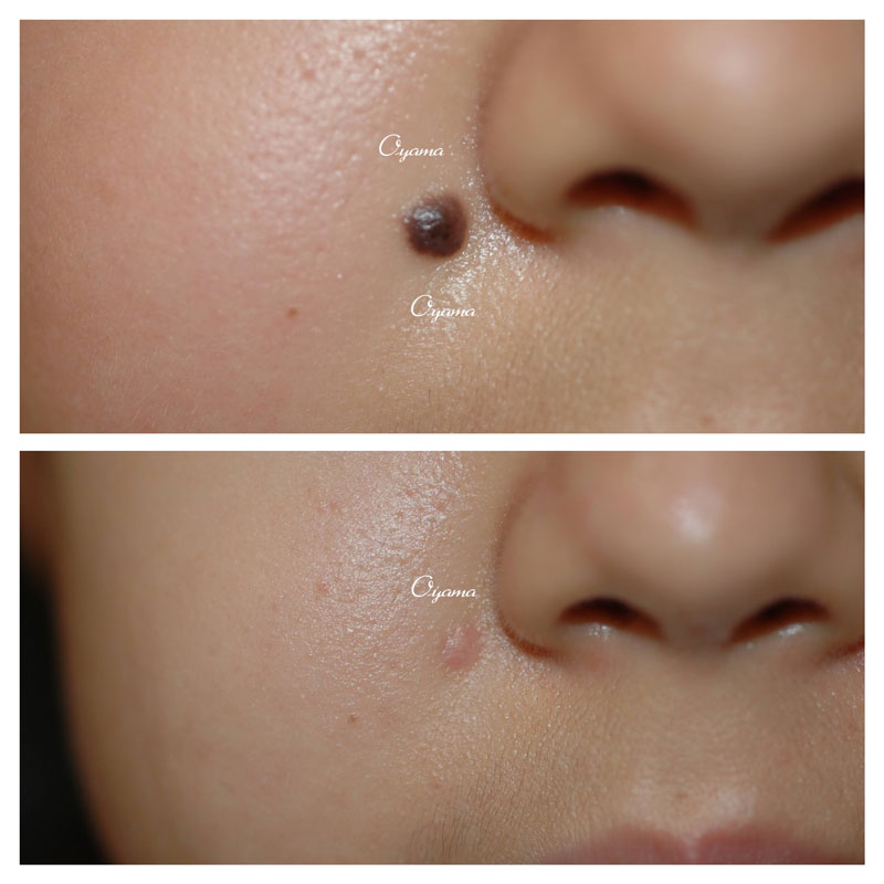 Qスイッチ・ルビーレーザーで除去できますが、隆起したホクロは除去できません。