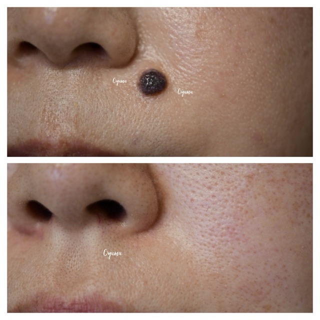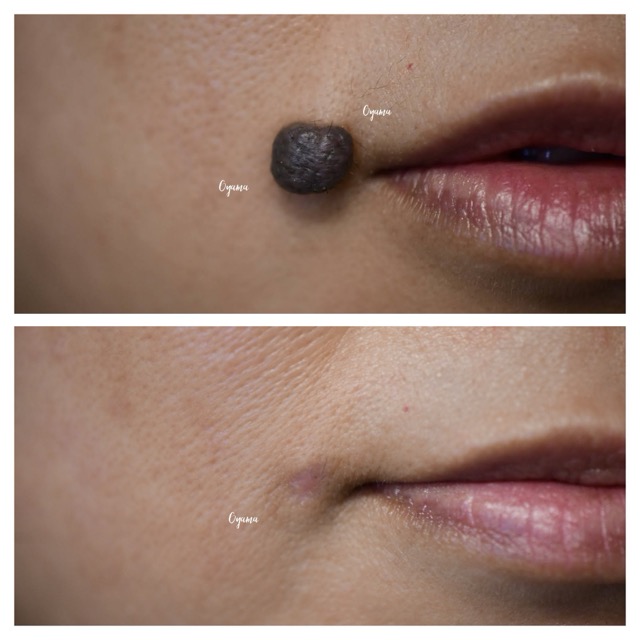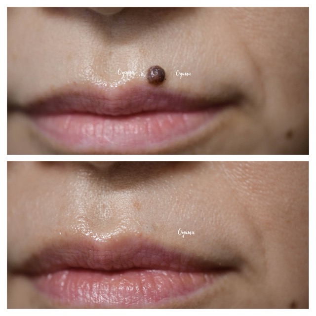 大きいほくろは口唇 に隣接しています。少し跡がありますが、全く印象が違います。
