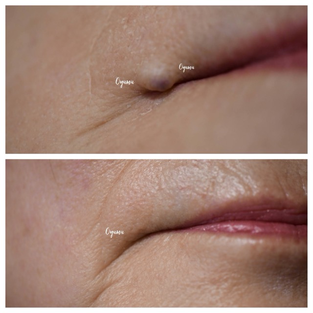 口元と鼻脇の2カ所、除去しています。口元は跡になって、ヒゲ脱毛にもなっています。